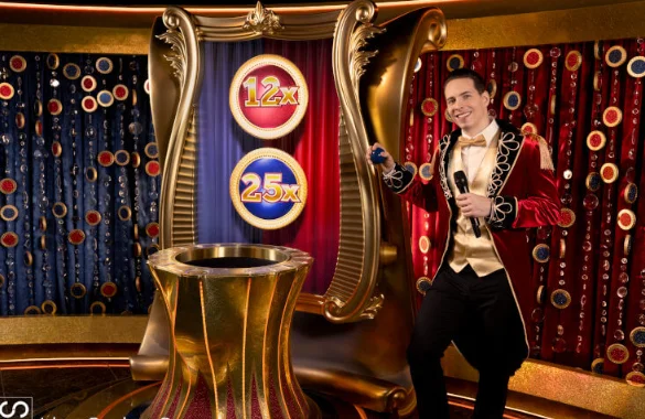 Ведущий переворачивает монету, на которой отображены два множителя: один красный, второй синий. В этот момент становятся понятны все результаты, включая: